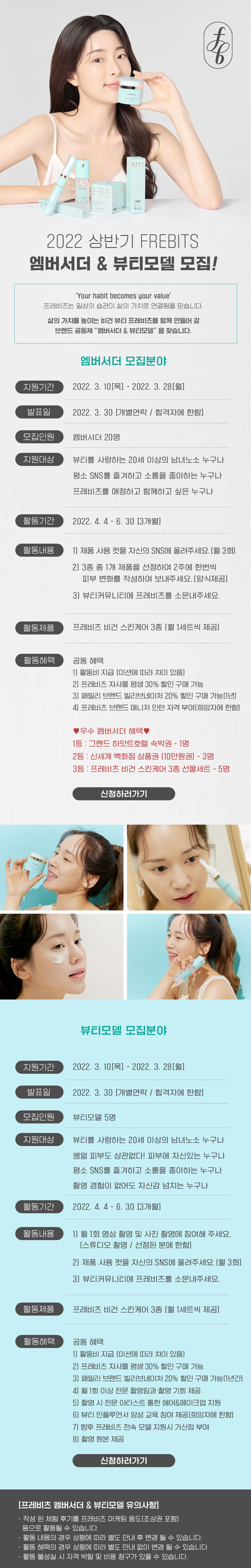프리미엄 비건 뷰티 프레비츠(FREBITS)에서 공식 엠버서더 & 뷰티 모델 1기를 모집 합니다!