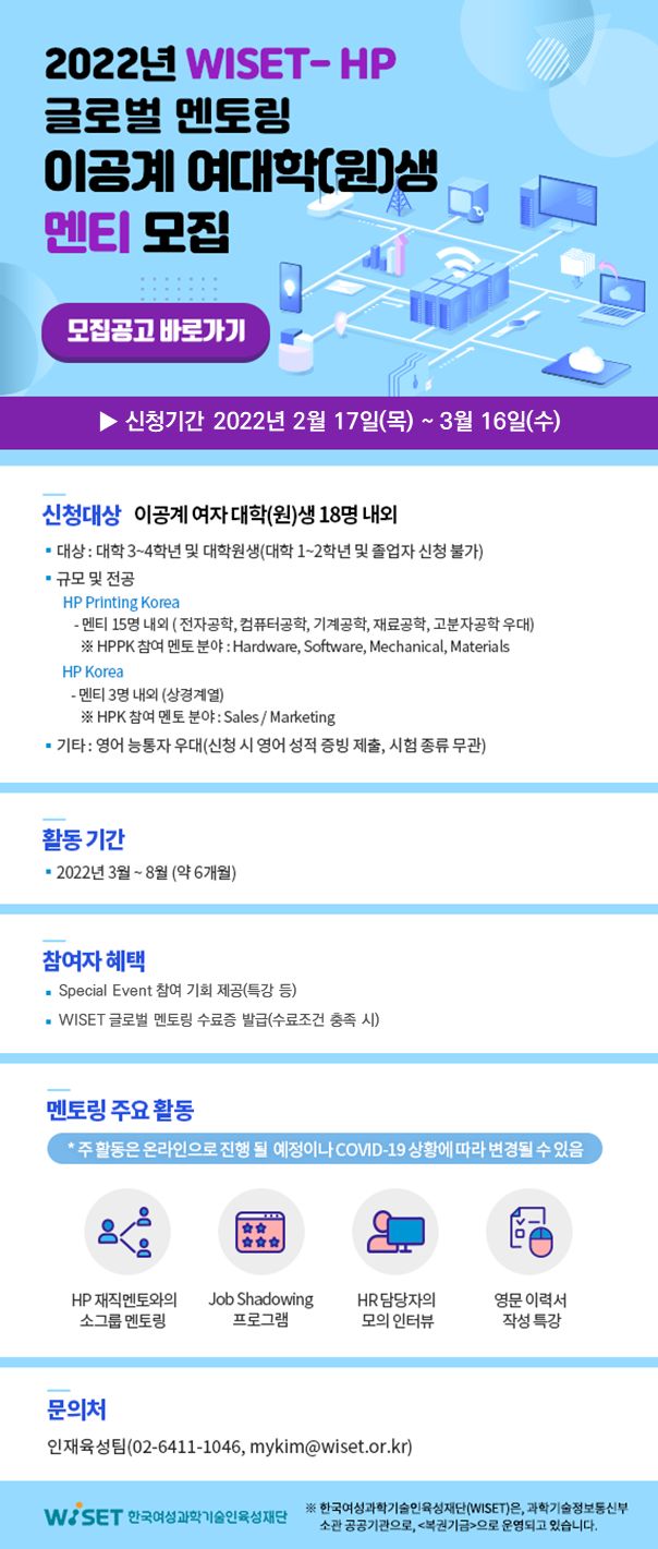 - WISET 인재육성팀 (mykim@wiset.or.kr / 02-6411-1046)