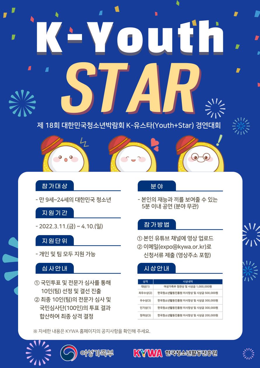 - 행 사 명: 제18회 대한민국청소년박람회 K-유스타(Youth+Star) 경연대회