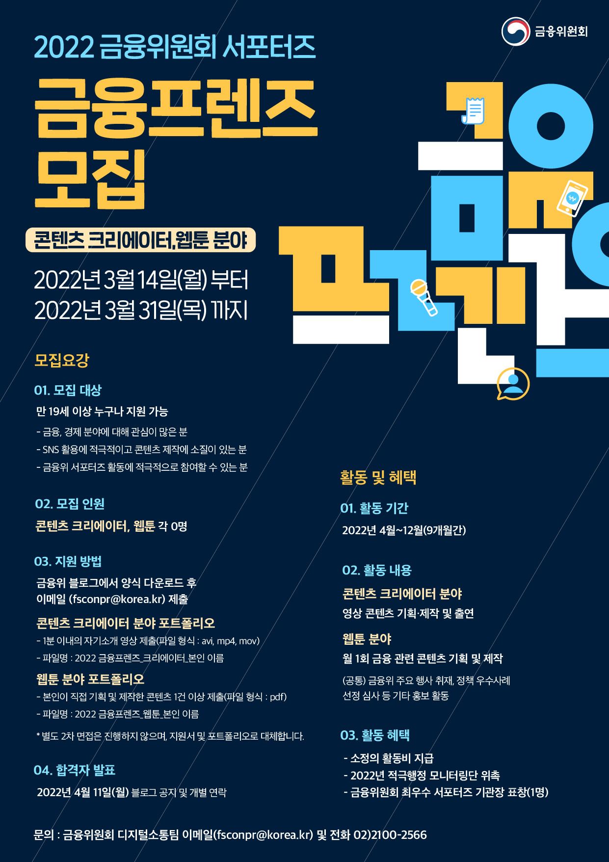 2022년 금융위원회 서포터즈 "금융프렌즈" 모집