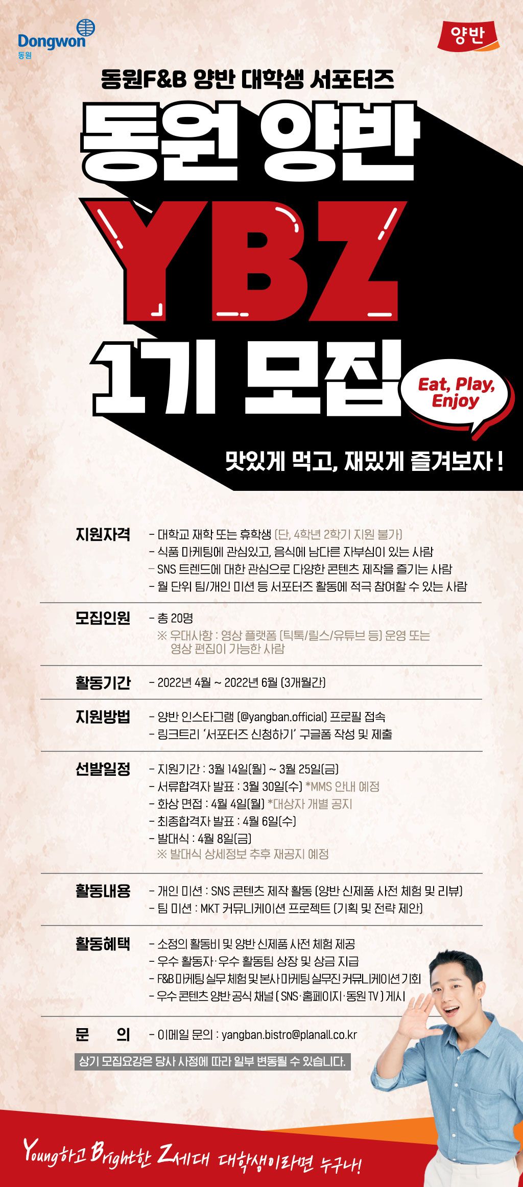 양반에서 대학생 서포터즈 YBZ 1기를 모집합니다