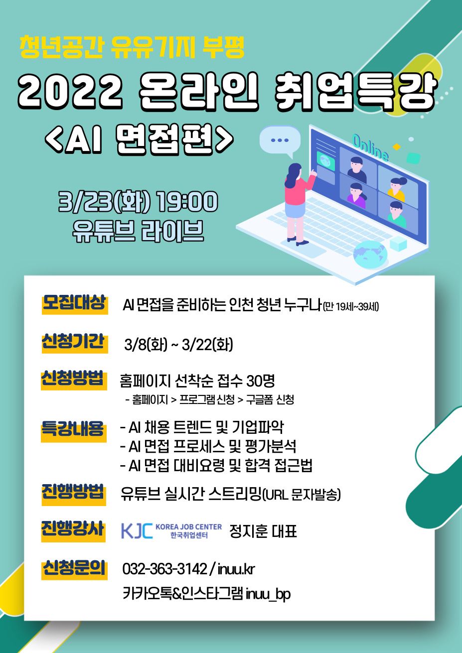 2022년 1차 온라인 취업특강 <AI면접 특강> 참여자 모집