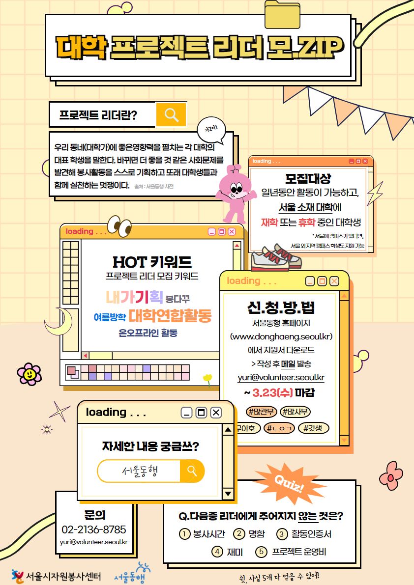 ☎ 02-2136-8785 / yuri@volunteer.seoul.kr