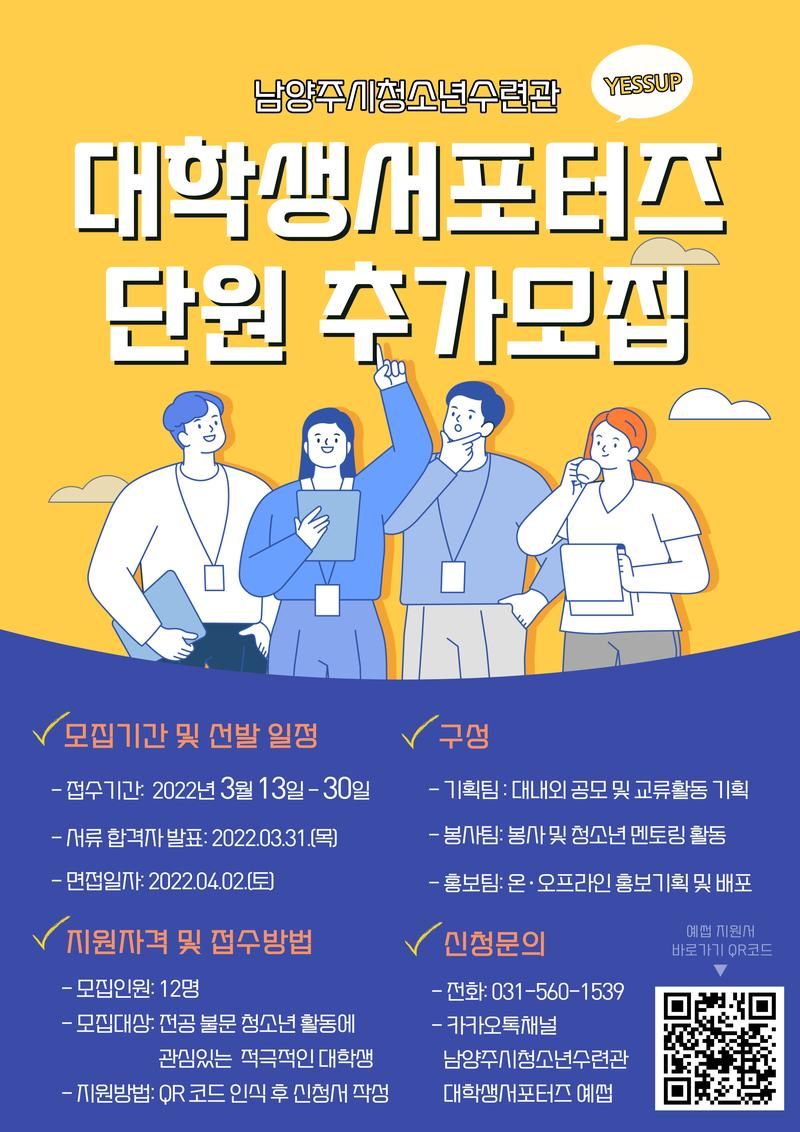 2022년 남양주시청소년수련관 4기 대학생 서포터즈 예썹(YESSUP) 추가모집
