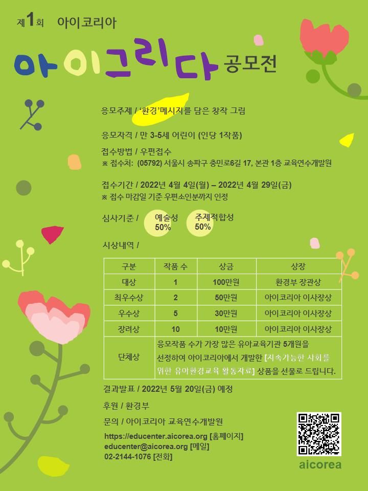 * 공모전에 대한 자세한 내용은 [아이코리아 교육연수개발원 홈페이지]를 참고해 주세요.