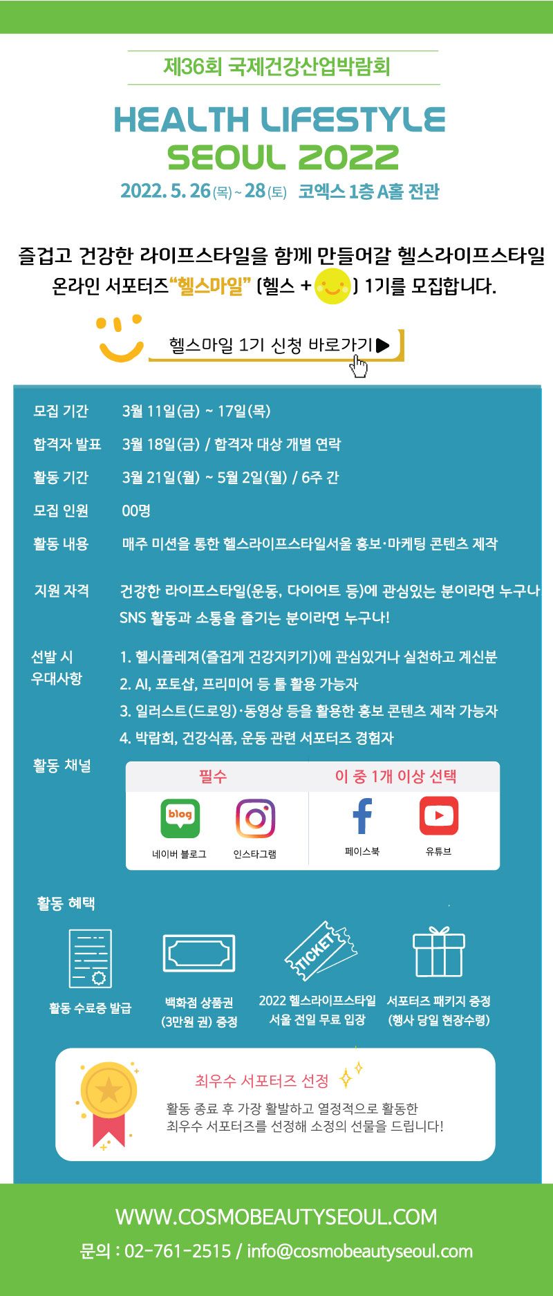 - 최우수 헬스마일을 선정해 소정의 선물 증정