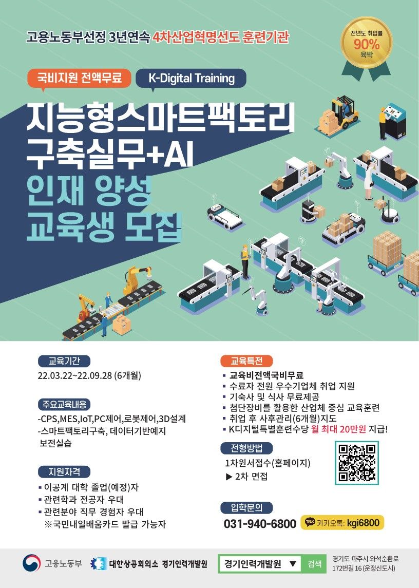 [K-디지털트레이닝] 지능형스마트팩토리구축실무+AI 교육생모집!
