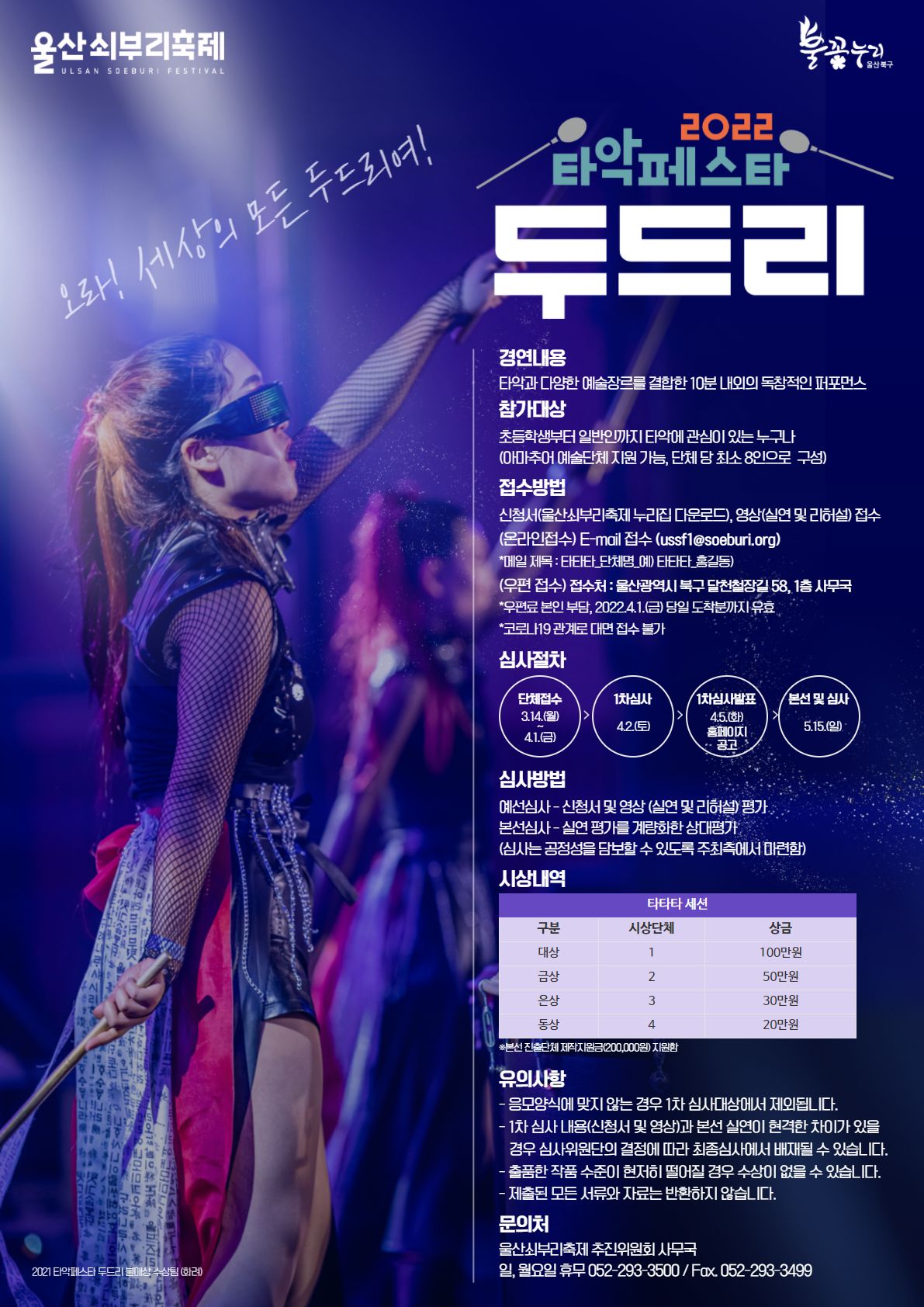 울산쇠부리축제하면 빼놓을 수 없는 대표 콘텐츠! 타악페스타_두드리에 참여할 아마추어 단체를 모집하오니 많은 관심 부탁드립니다~