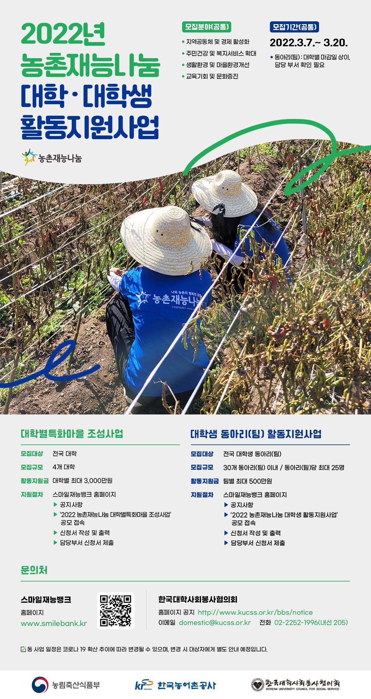 “2022년도 농촌재능나눔 대학·대학생 활동지원사업”