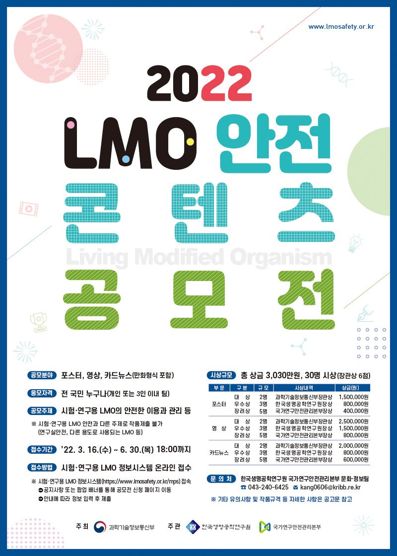 ※ 시험‧연구용 LMO 안전과 다른 주제로 작품제출 불가(연구실안전, 다른 용도로 사용되는 LMO 등)