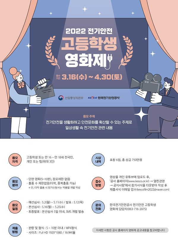 - 한국전기안전공사 전기안전 고등학생 영화제 담당자(063-716-2075)