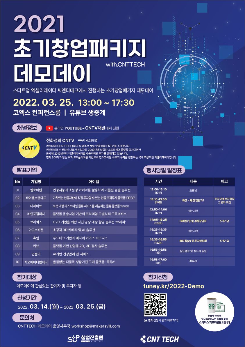 - CNTTECH 데모데이 운영사무국 workshop@makersvill.com