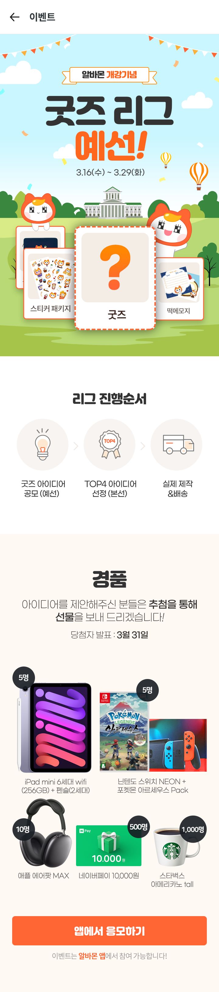 2. 알바몬 앱 <굿즈 리그 예선> 이벤트 페이지에 들어간다.