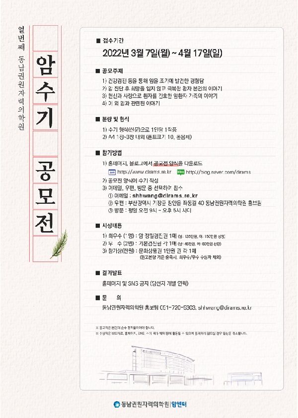 - 동남권원자력의학원 홍보팀 : 051-720-5304 / shhwang@dirams.re.kr