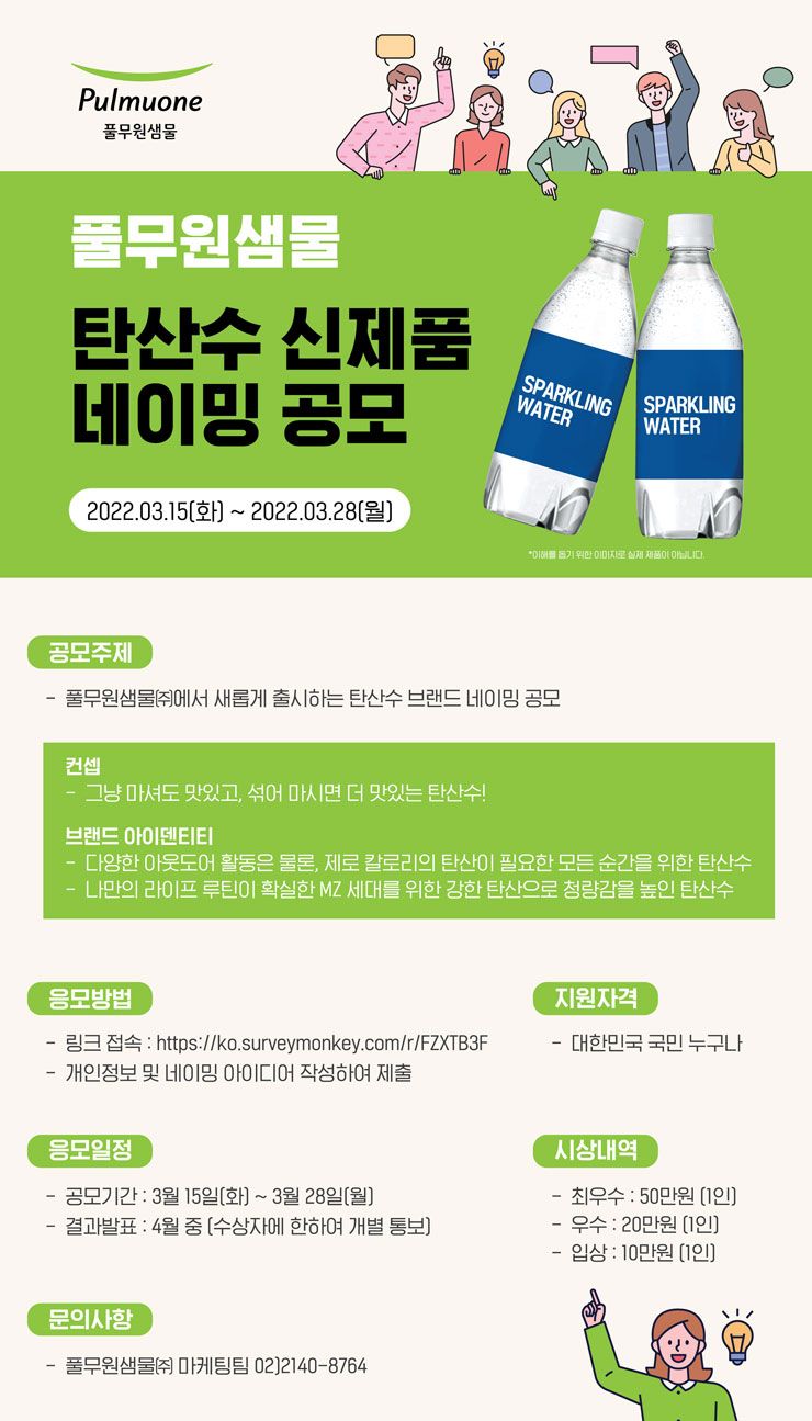 ■ 문의사항: 풀무원샘물㈜ 네이밍 공모전 담당자 dyleel@pulmuone.com / 02)2140-8764