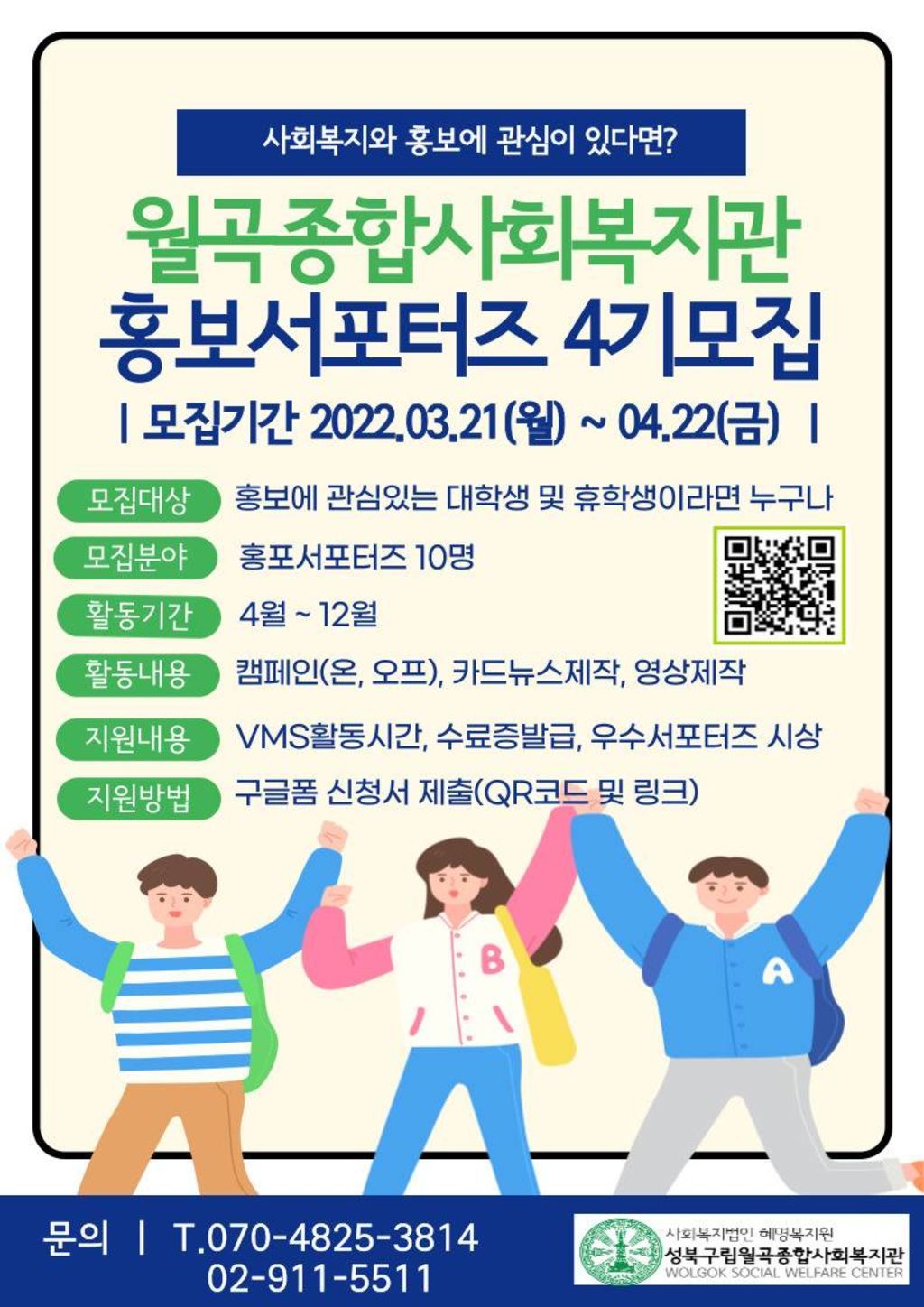 월곡종합사회복지관과 2022년 함께 하실 홍보서포터즈를 모집합니다 ^^