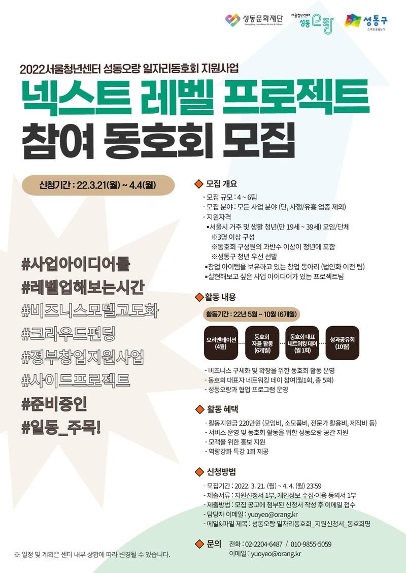 - 메일&파일 제목 : [서울청년센터 성동오랑] 일자리동호회_지원신청서_동호회명