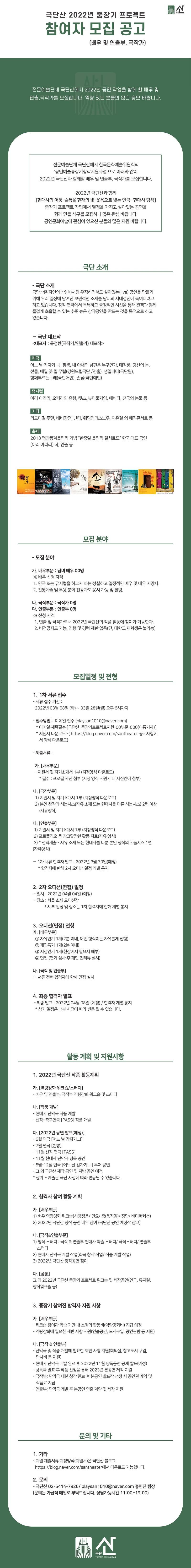 [극단산] 2022 중장기 프로젝트 참여자 모집 공고 (극작가)