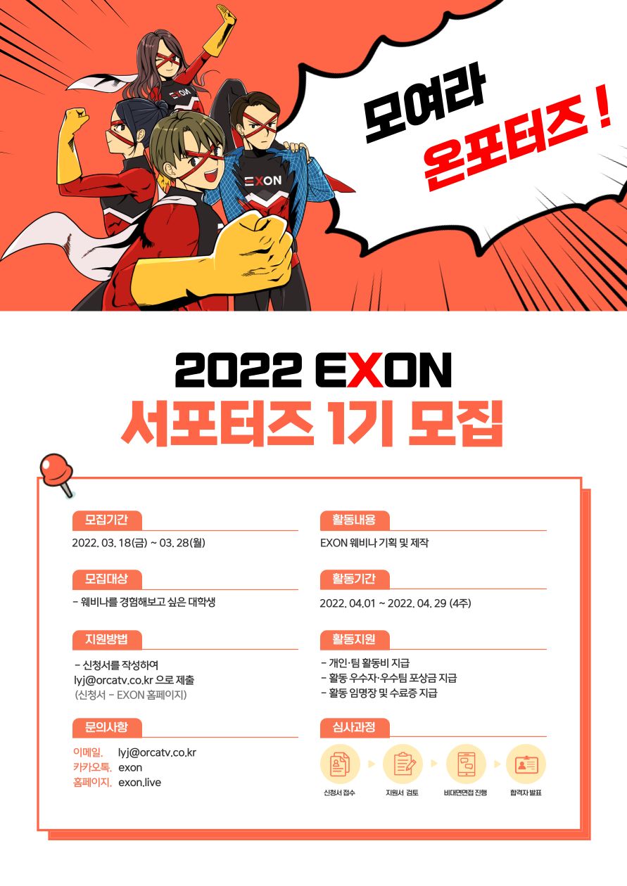 국내 대표 온라인 행사 플랫폼 EXON에서 서포터즈 1기를 모집합니다.