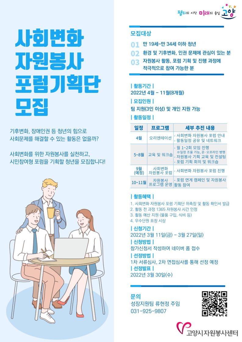 자원봉사 포럼을 진행할 청년 여러분을 모집합니다!