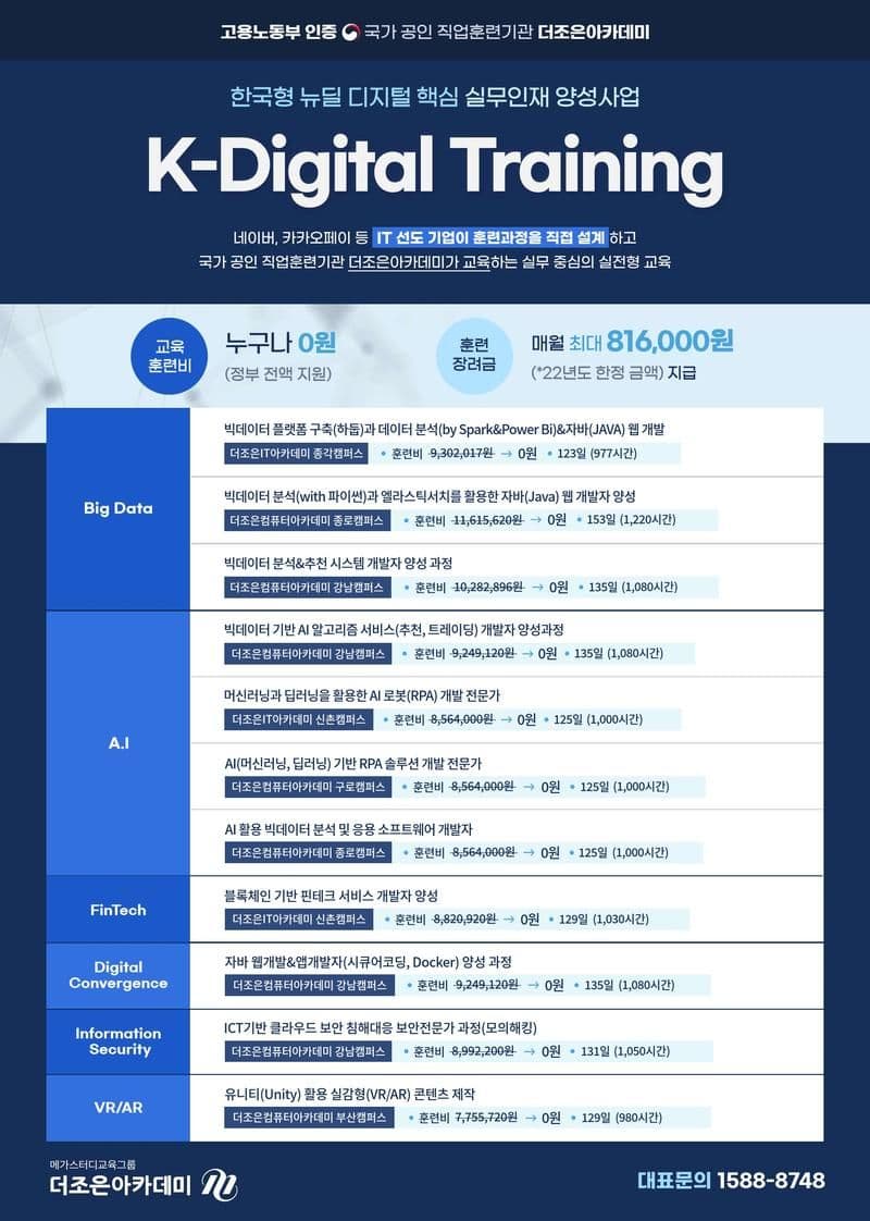 K-Digital Training 전액 국비지원 교육 과정 모집🎁