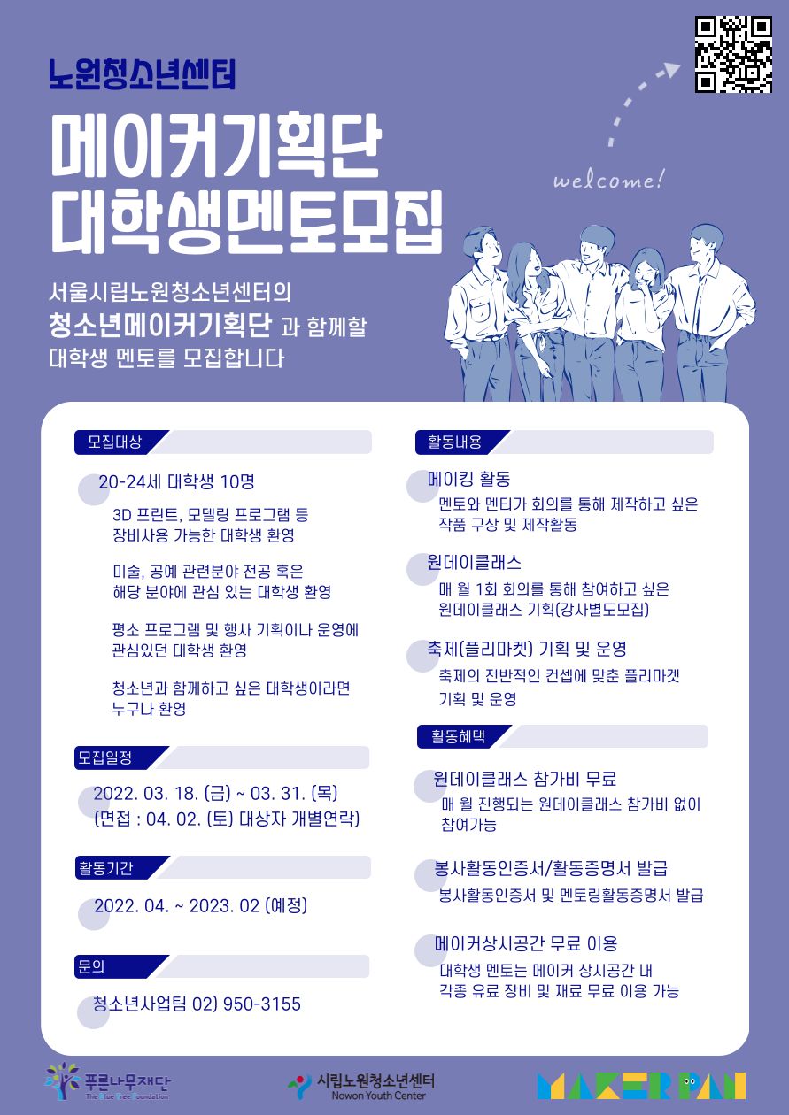 아이디어를 현실로 만드는 청소년메이커기획단과 함께할 대학생 멘토를 모집합니다.