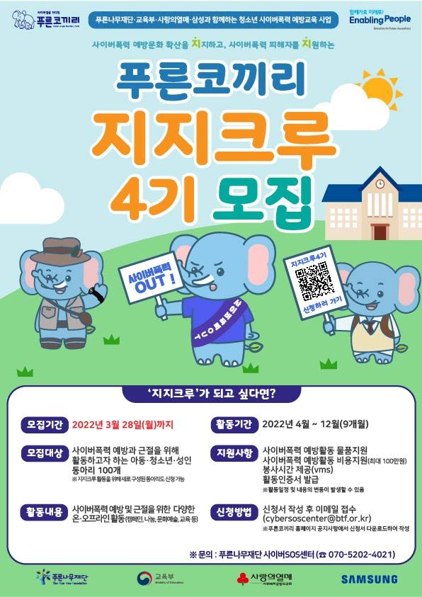 ■ 문의사항 : 푸른나무재단 사이버SOS센터 (☎ 070-5202-4021)