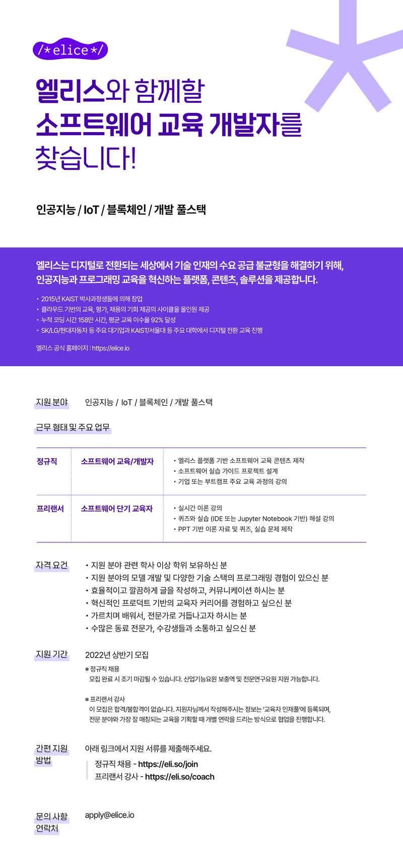 • 엘리스 플랫폼 기반 소프트웨어 교육 콘텐츠 제작