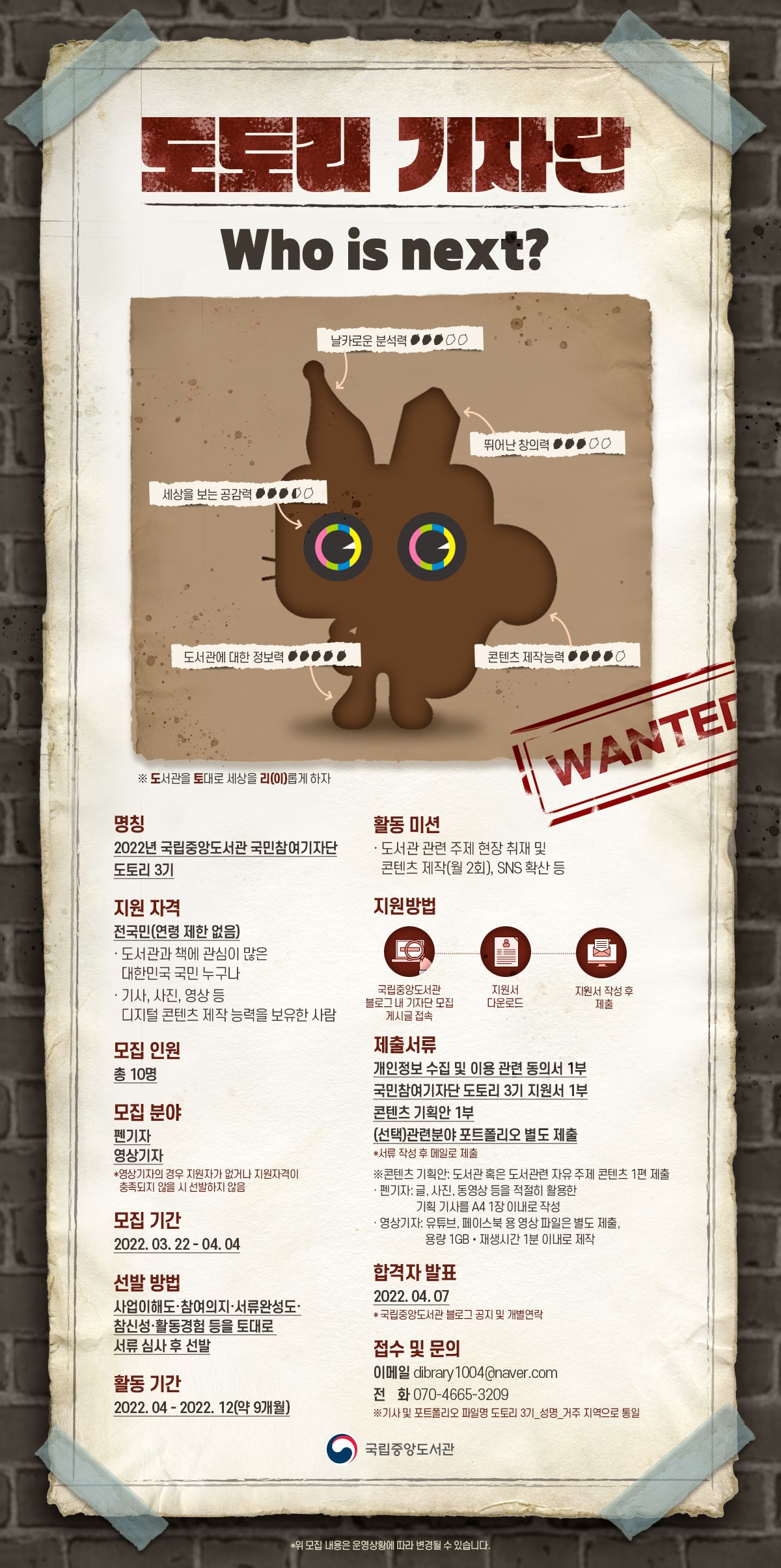 2022년 국립중앙도서관 국민참여기자단 도토리 3기를 모집합니다!