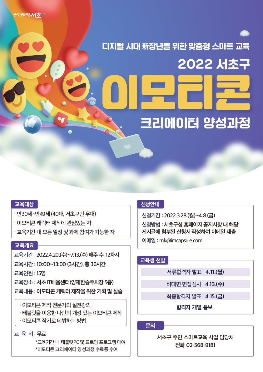 2022. 서초구 이모티콘 크리에이터 양성과정 교육생 모집