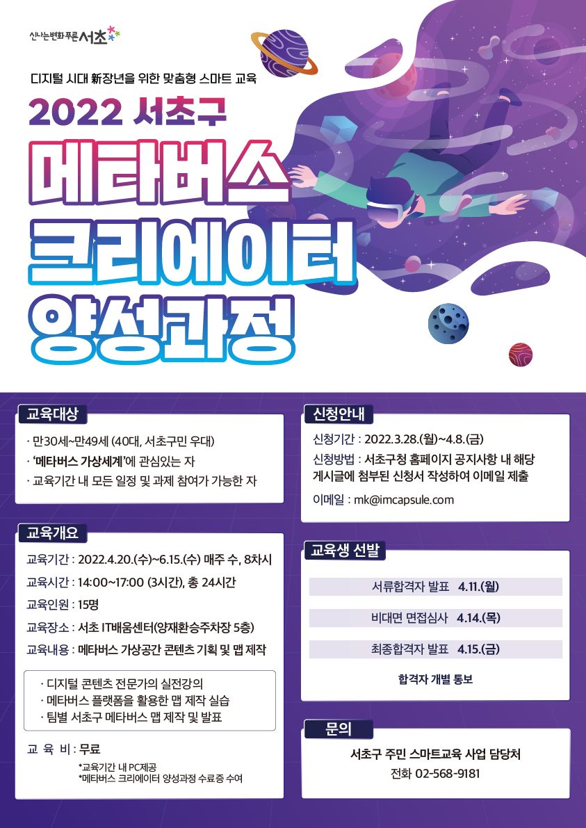 2022. 서초구 메타버스 크리에이터 양성과정 교육생 모집