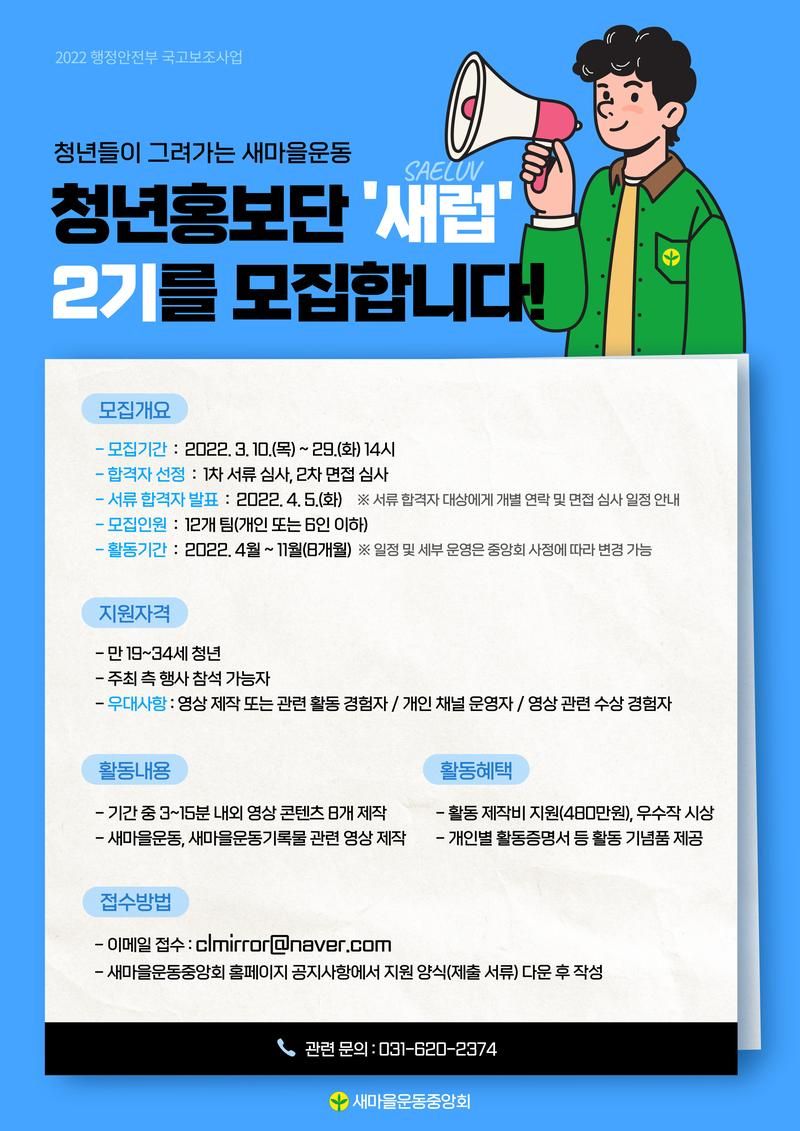 새마을운동중앙회 청년홍보단 '새럽' 2기를 모집합니다!