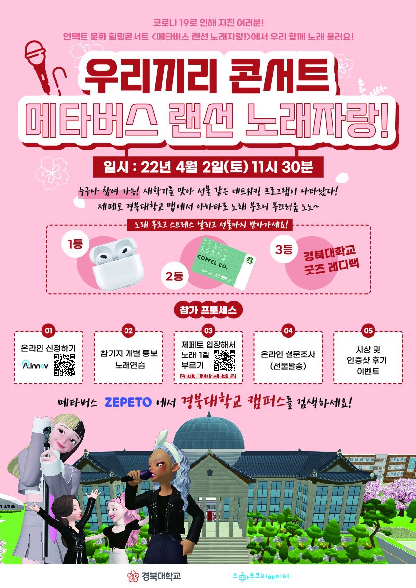 #경북대학교 #KNU메타버스 #서포터즈 #고등학생 #캠퍼스투어 #에어팟 #스타벅스 #바나나우유 #제페토