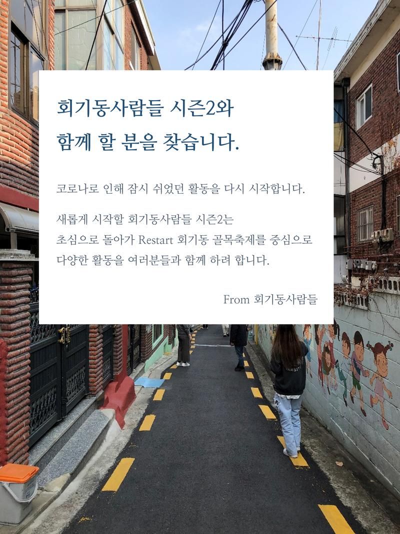 - Restart 회기동 골목축제, 2022년 5월 8번째 골목축제를 기획하고 함께 해요.