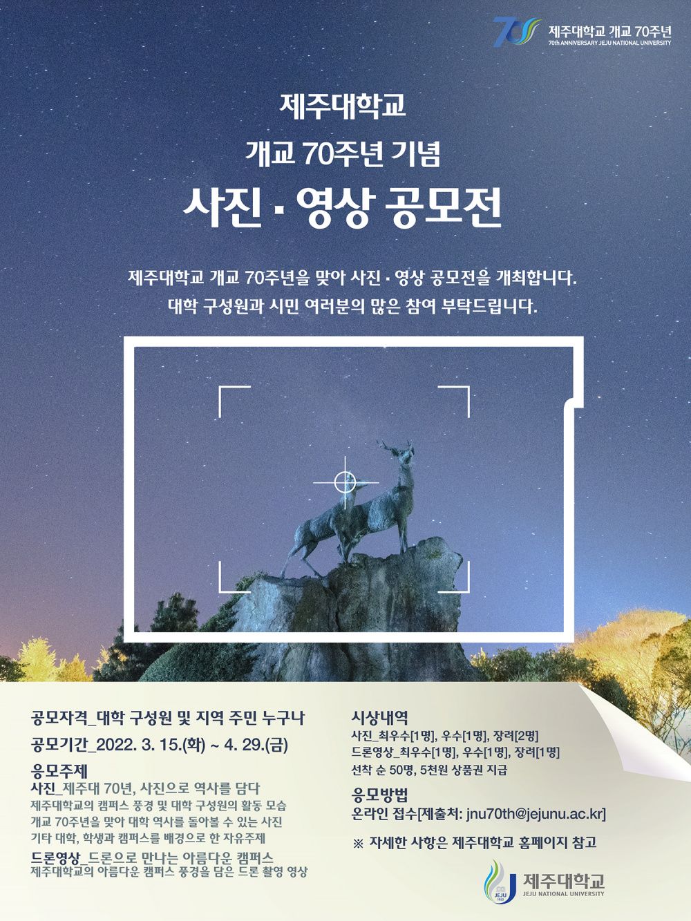 - 온라인 접수 : jnu70th@jejunu.ac.kr