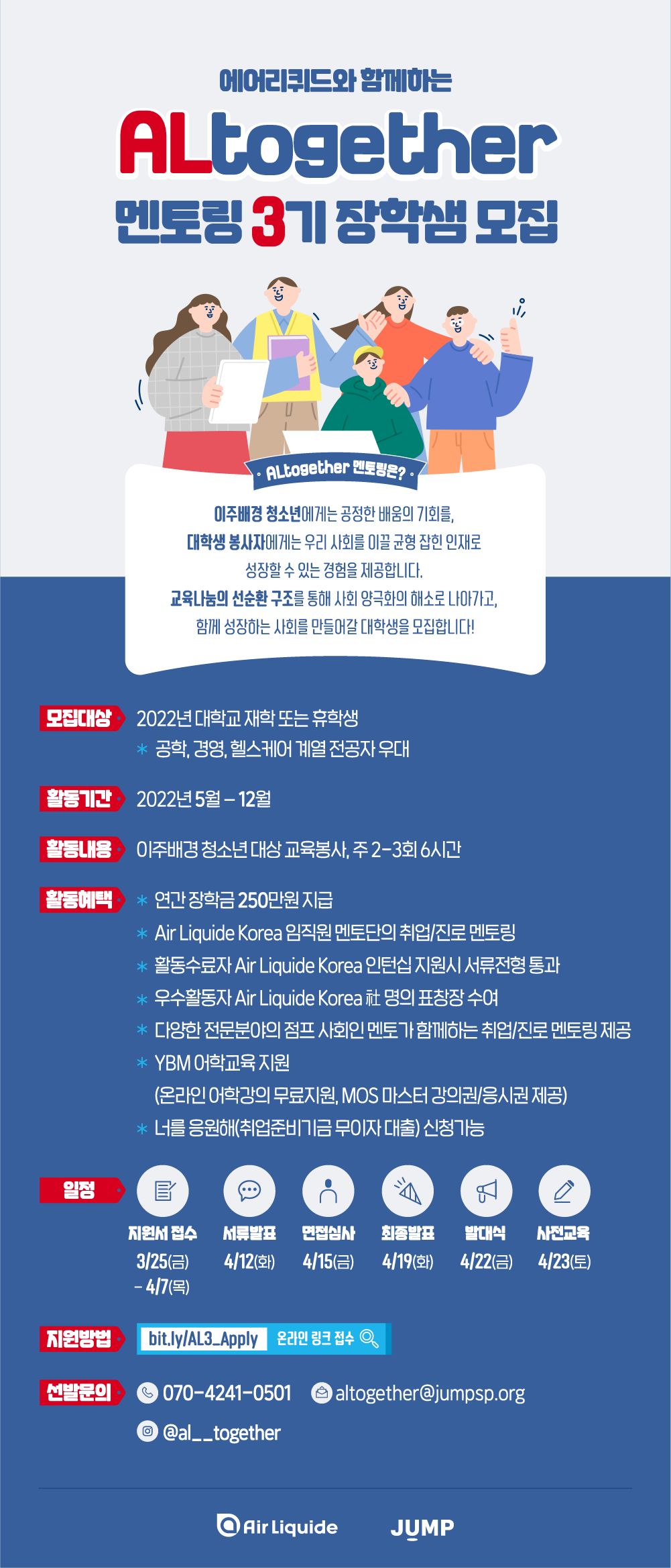 에어리퀴드 코리아와 함께하는 ALtogether 멘토링 3기 장학샘을 모집합니다. (~4/7 목)