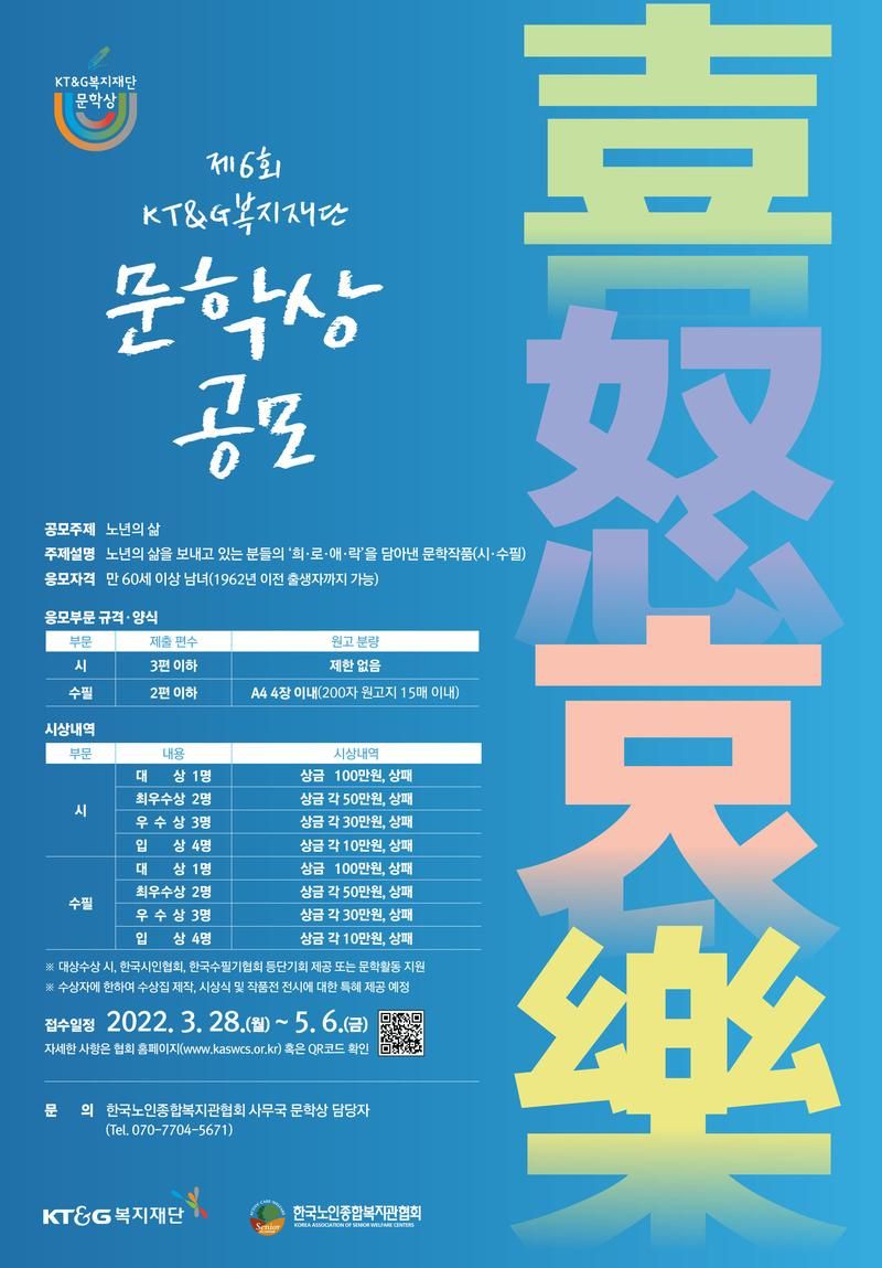 문의: 한국노인종합복지관협회 사무국 문학상 담당자 (Tel. 070-7704-5671)