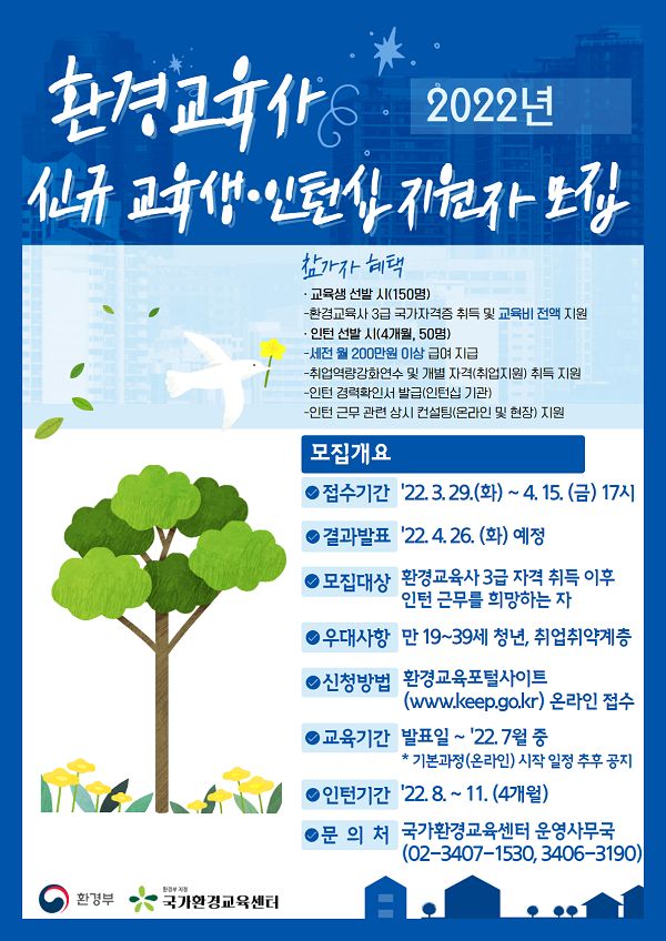 「2022년 환경교육전문가 양성 사업」 환경교육사 신규 교육생·인턴십 지원자 모집 공고