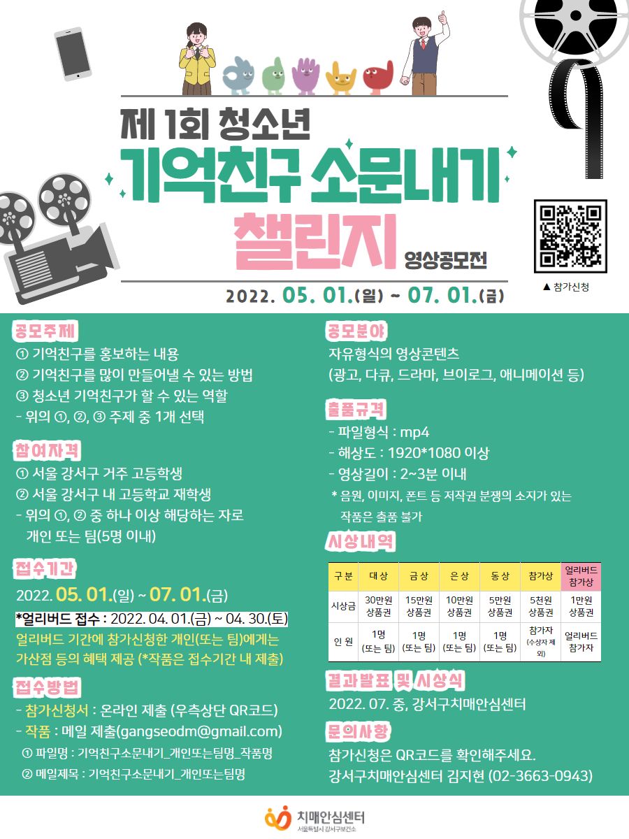 제 1회 「청소년 “기억친구 소문내기” 챌린지」 영상공모전을 개최합니다.