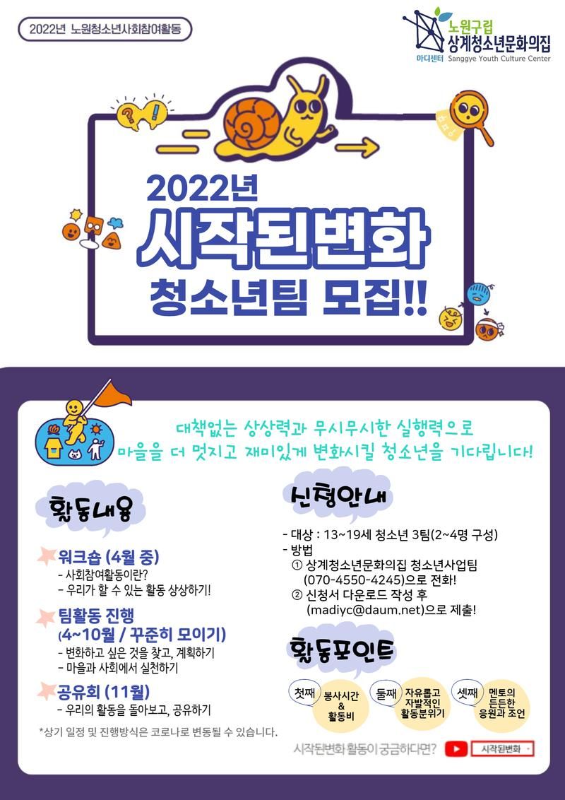 2022 시작된변화 활동팀을 모집합니다!! (선착순 3팀)