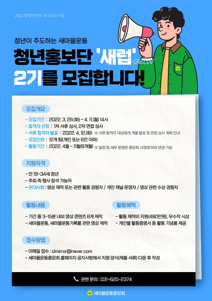 새마을운동중앙회 청년홍보단 '새럽' 2기를 모집합니다!