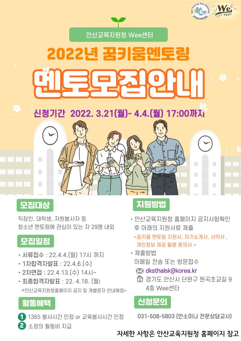 2022학년도 안산교육지원청 Wee센터 꿈키움 멘토링 멘토 모집