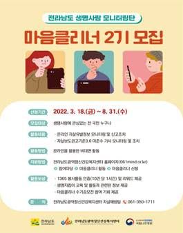 전라남도광역정신건강복지센터 생명사랑 모니터링단 마음클리너 2기 모집