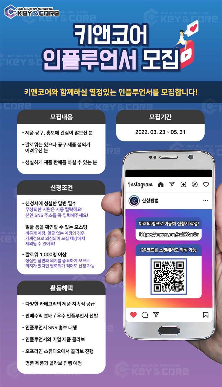 키앤코어와 함께하실 열정있는 인플루언서를 모집합니다!