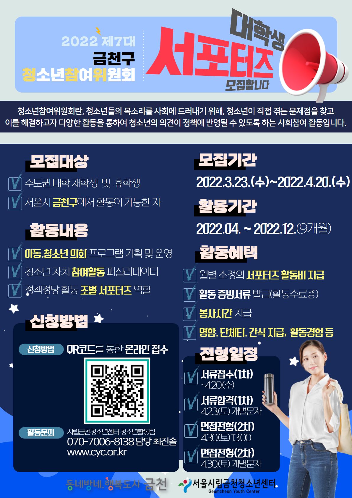 ■ 지원자격 : 수도권 대학 재학생 및 휴학생, 서울시 금천구에서 활동이 가능한 자(만19세~29세)