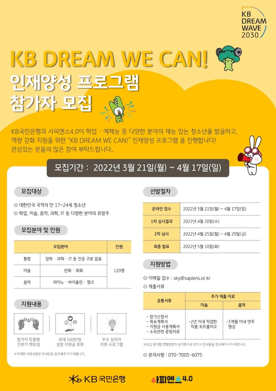 KB국민은행과 사피엔스4.0이 학업, 예체능 등 다양한 분야의 재능있는 청소년을 발굴하고