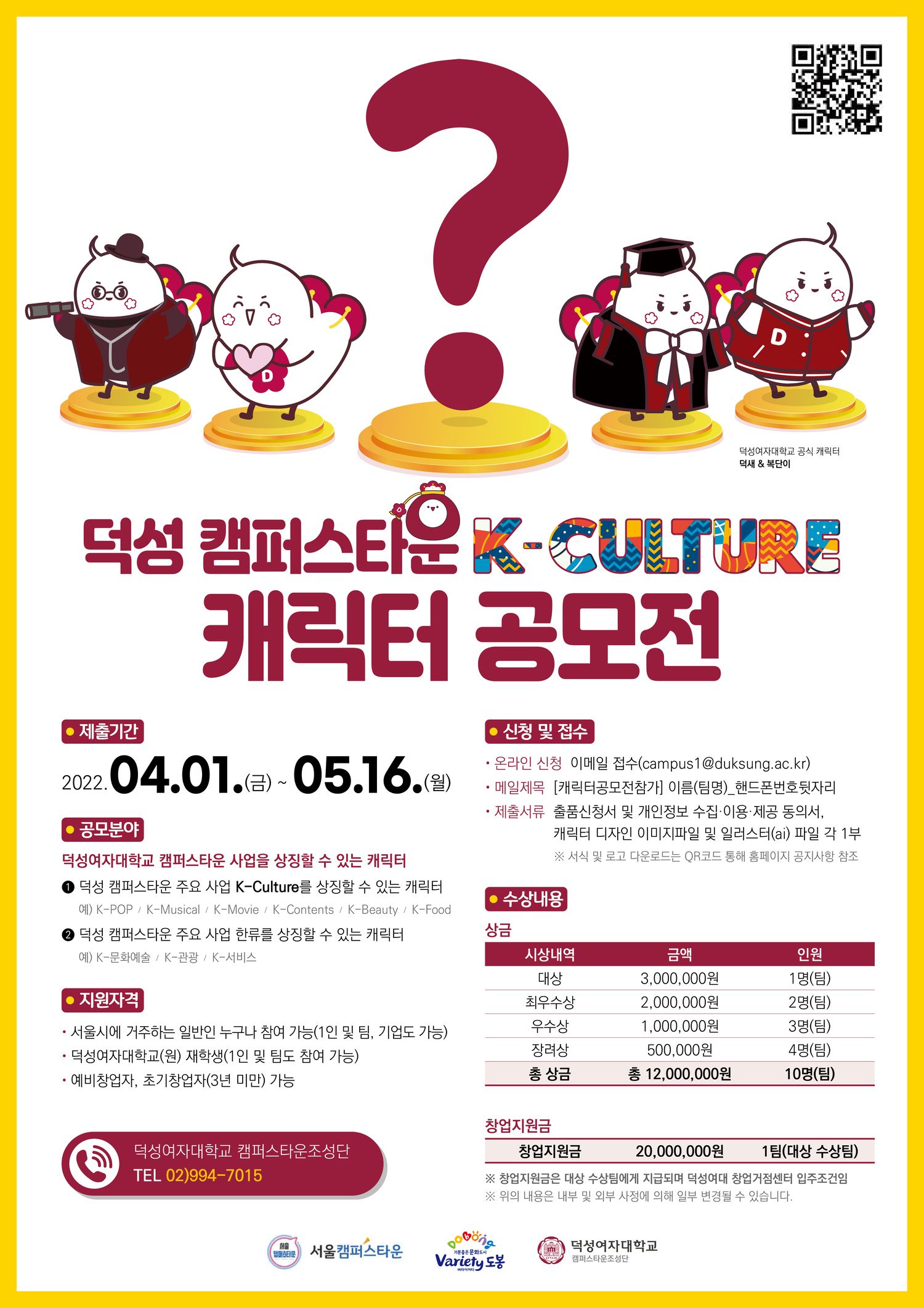 ◎ 모집분야 : 덕성여자대학교 캠퍼스타운 사업을 상징할 수 있는 캐릭터