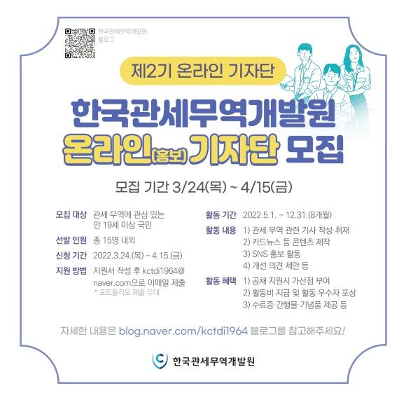 한국관세무역개발원에서 열정 가득한 온라인 기자단을 모집합니다.