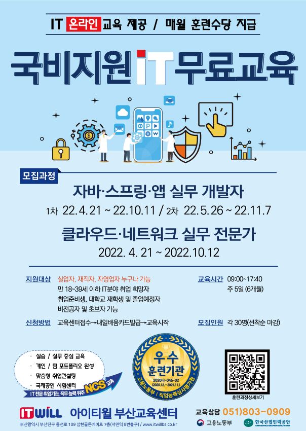 아이티윌 부산교육센터 "IT취업교육" 훈련생 모집!