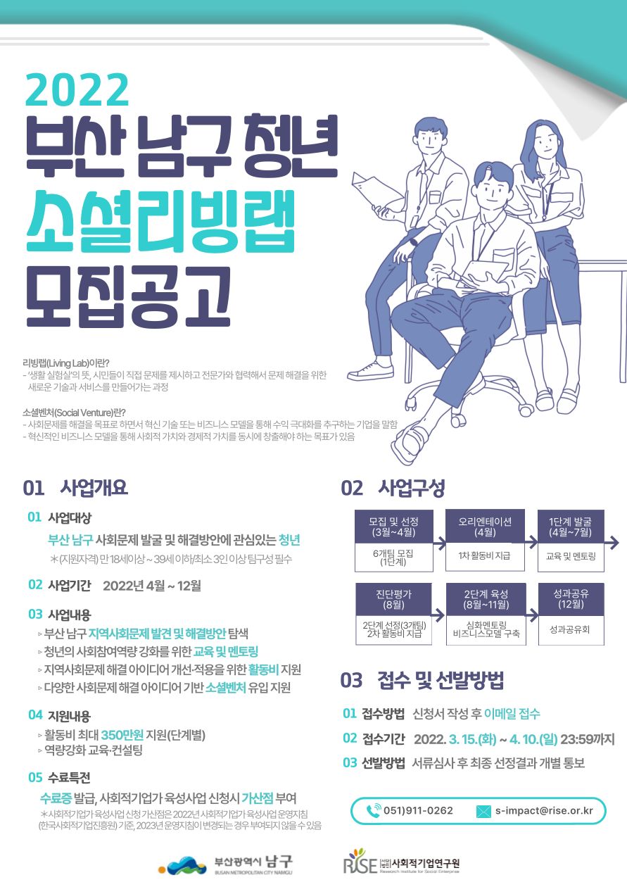 - (사)사회적기업연구원 사회혁신팀 ☎ 051-911-0262 ( s-impact@rise.or.kr )